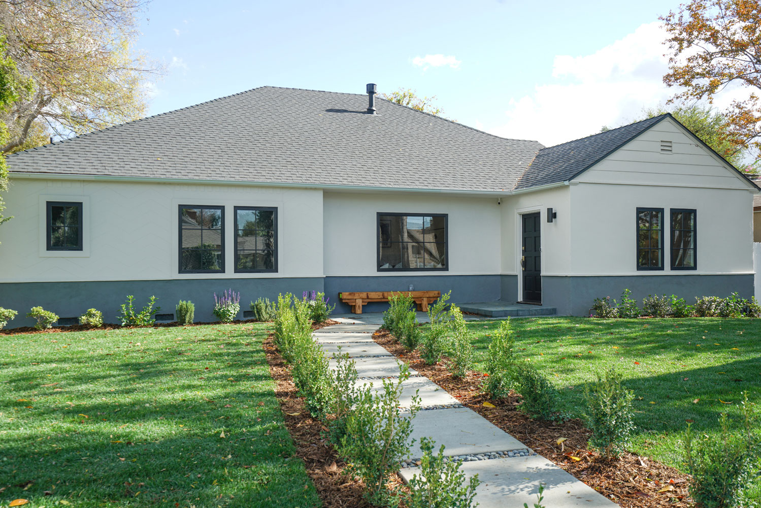 Completely updated inside and out! Nestled on a beautiful corner lot in charming Valley Village, this property has been reimagined into a bright and modern home boasting a sophisticated 4 + 3 open floorplan. Highly desirable Colfax Elementary School district. Designer finishes and fixtures carefully selected to enhance the stunning new look. An inviting, spacious living room features a see-through fireplace with a marble surround. Chefs will love the large gourmet kitchen with custom cabinetry, Bertazzoni range, quartz counters, and 9ft. island! The kitchen is open to a fireside dining area and family room where large sliders open to oversized grassy yard & patio perfect for gatherings. Additional covered patio off the kitchen offers an intimate space for Al Fresco dining. The master suite is an airy retreat with a vaulted ceiling and spa-like ensuite offering a soaking tub, glass shower and double quartz vanity with custom cabinetry and tile work. Truly a must see!